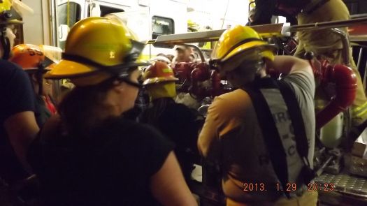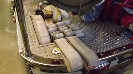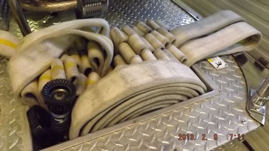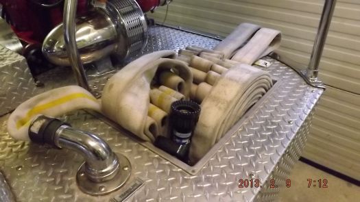 Wednesday, January 30, 2013 - Last Evening for weekly drill night, the Refton Volunteers performed monthly Preventative Maintenance to the apparatus, saws, tools, fans and other equipment while the Line Officers met with a local equipment vendor to start pricing out additional equipment needed to finish the 'Rescue 59' project. Once the Maintenance was completed and the Line Officers were done with their meeting, all crews converged to the front bumper of Engine 59-2 to drill on a newer type of hose load that was decided to be placed into service.