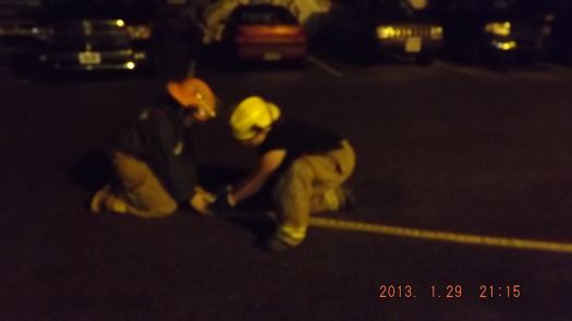 The newer hose load was developed by the brothers from Bladensburg Fire Company and some of our surrounding mutual aid companies are starting to use it as well. This newer type of hose load allows us to double the amount of hose we can pack in the trough that is in the front bumper. Before, we could only load 100' of 1 3/4" hose. With this newer load, we can now load 200' of 1 3/4" hose. Another advantage of this newer load is that the line can be deployed by one person (if a second person isn't there to help depoly it). Crews spent the rest of the night drilling on proper loading and deployment of this load. We are currently experimenting with this load and if it continues to be successful, we plan on converting the bumper lines on Engine 1 and the Brush to the newer style load.